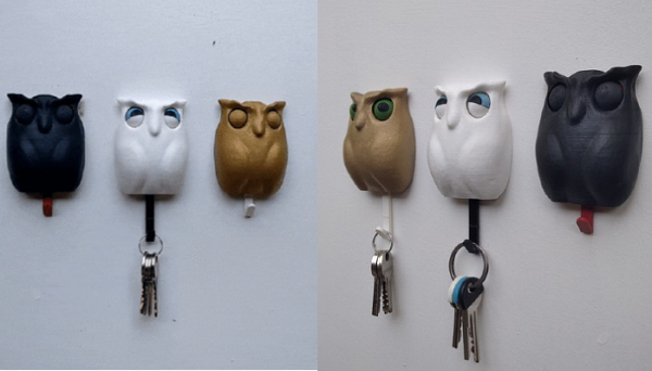 钥匙收纳神器很有用,但谁知道他们也可以这么有趣! 如果您经常忘记把钥匙放在屋子里的哪个地方, 您可以3D打印眨眼的猫头鹰,猫头鹰在没有挂放钥匙的时候会闭上眼睛,但是一旦挂上钥匙,重量就会使大圆头猫头鹰的眼睛张开。这些模型由多个零件组成,但是非常容易组装。文件下载链接