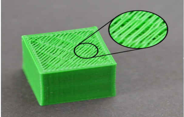 说明:打印件内部的填充,会成为它上面层的基础。打印件顶部的实 心层,需要在这个基础上打印。如果填充率非常低,那填充中将有大量空的间 隙。比如,你只使用 10%的填充率,那么打印件里面,剩下 90%将是中空 的。这将会导致实心层,需要在非常大的中空间隙上打印。如果你试过增加顶 部实心层的数量,而你在顶部仍然能看到间隙,你或许可以尝试增加填充率, 来看看是间隙是否会消失。比如,你的填充率,之前设置的是 30%, 试着用 50%的填充率,因为这样,可以提供更好的基础,来打印顶部实心层。
