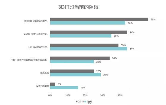 尽管3D打印有诸多优势,但仍无法避免快速发展所带来的弊端——材料问题、打印速度问题以及专业化的人员配备。材料是制约3D打印市场拓展的首要问题,研发高速及更广泛的打印材料是3D打印机厂商重要的发展方向,与此同时,专业的知识和人员也是市场不断扩张的重要配备资源。